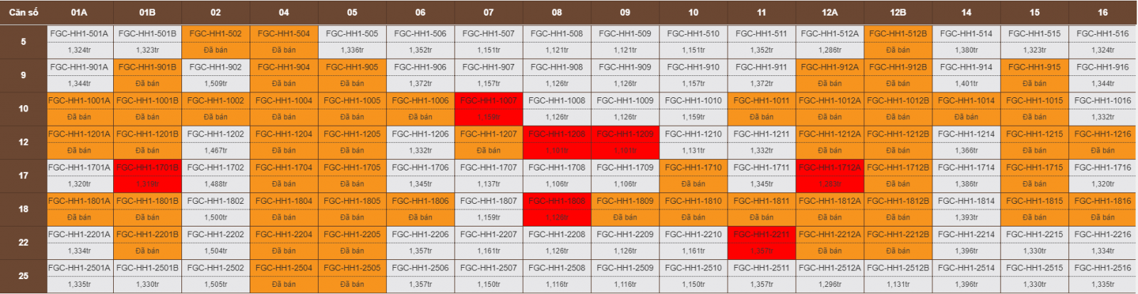 BẢNG GIÁ & CHECK CĂN TRỰC TUYẾN TÒA HH1 - 5 PHÚT CẬP NHẬP 1 LẦN